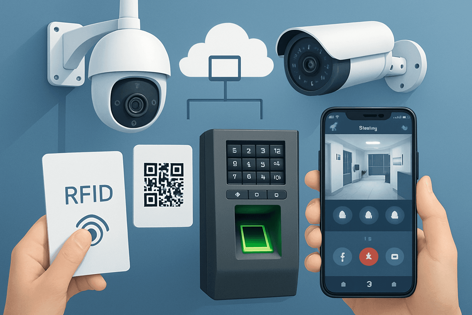 Atualizamos com que há de mais modernos no mercado, como cameras IP com alta resolução, visão noturna e detecção de movimento, além de sistemas de controle de acesso por biometria, cartões RFID e códigos QR. Nossa solução integra todos esses dispositivos em uma única plataforma, permitindo monitoramento em tempo real, gravação em nuvem e alertas instantâneos via aplicativo móvel. Ideal para empresas que buscam segurança avançada, facilidade de gestão e controle total sobre o acesso às suas instalações.