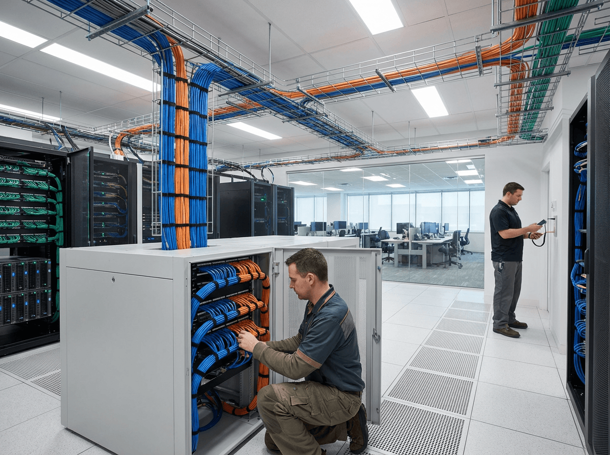 Nossa solução de Cabeamento Estruturado e Infraestrutura de Rede oferece uma base sólida para a conectividade da sua empresa. Utilizamos materiais de alta qualidade e técnicas avançadas para garantir desempenho, confiabilidade e escalabilidade. Projetamos e implementamos sistemas de cabeamento que suportam as demandas atuais e futuras, facilitando a integração de novos dispositivos e tecnologias. Ideal para empresas que buscam uma infraestrutura de rede eficiente, organizada e preparada para o crescimento dos negócios.